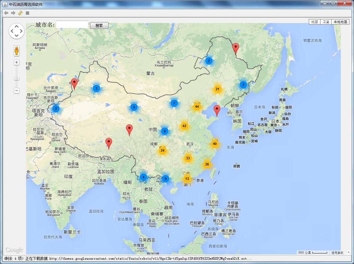 中石油瀝青選擇軟件是基于GIS的本地化軟件,在離線GoogleMap基礎上,通過氣象局采集的30年氣象數(shù)據(jù),計算出各地區(qū)平均最低和平均七日連續(xù)最高氣溫,并自動選擇合適的瀝青型號,支持200多個城市。